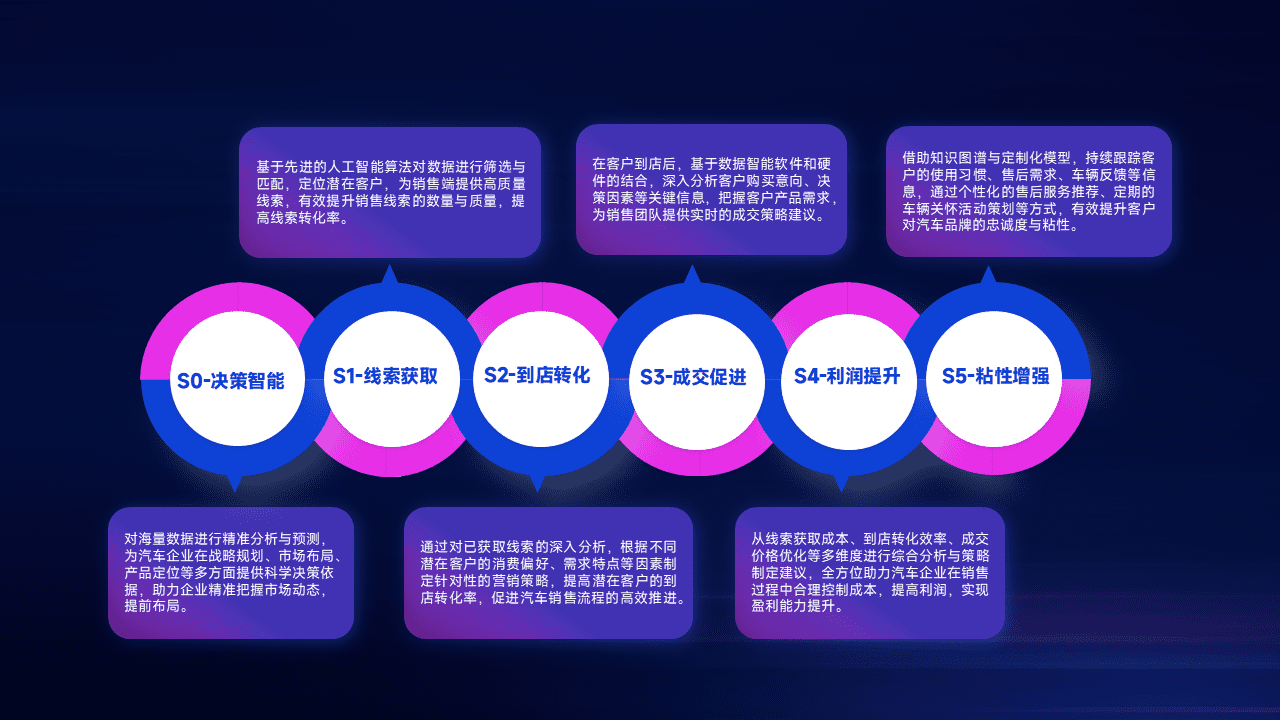 基于销售转化漏斗的薄弱环节,,,,为客户提供数据+模型+运营的智能应用,,,实现销售业绩的提升;推动线索管理全链路的精细化管理和运营。。。。